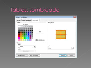 Las tablas conformanestructuras que nos permiten organizar información de todo tipo dentro de un documento de Word.