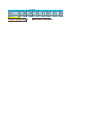 Este documento resume la facturación de cuatro artículos (camisa, pantalón, corbata y camiseta) con su costo, cantidad, total, utilidad, IVA, importe total, a cuenta y neto. Se incluye también el total neto, la utilidad promedio, la utilidad máxima, la utilidad mínima, el porcentaje de utilidad y el porcentaje de IVA aplicado.