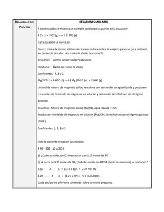 El documento describe una sesión de aprendizaje sobre el suelo como fuente de nutrientes para las plantas. Los estudiantes aprenderán que el suelo es el alimento de las plantas y cómo mejorar un suelo deficiente en sales a través de experimentos. Realizarán ejercicios de balanceo de ecuaciones químicas y clasificarán reacciones. Presentarán sus hallazgos en grupos y aprenderán sobre métodos para obtener sales como fertilizantes para enriquecer el suelo.