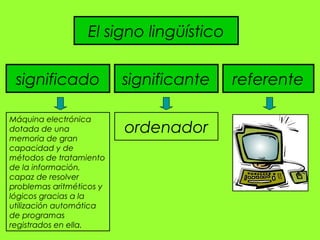 Este documento resume los principales conceptos de la semántica. Explica que la semántica estudia el significado de las palabras y expresiones lingüísticas. Define los conceptos de significado, significante y referente. Luego describe las relaciones entre el significante y significado, como la polisemia, homonimia y sinonimia. Finalmente, explica otras relaciones semánticas como la antonimia, hiperonimia e hiponimia.