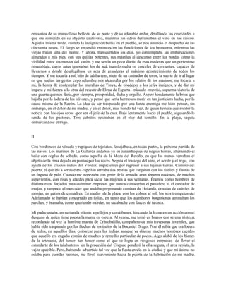 Este documento es un extracto de la novela "Semejante a la noche" de Alejo Carpentier. Narra la historia de un joven que se prepara para embarcar en una de las 50 naves que partirán de su aldea hacia Troya para luchar en la guerra de Troya. Describe las escenas en la playa mientras se cargan los suministros en las naves y la emoción y orgullo que siente el joven de poder participar en esta gran gesta histórica. También incluye detalles sobre sus conversaciones con su padre y madre antes