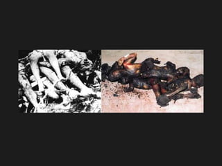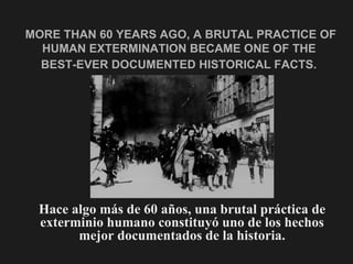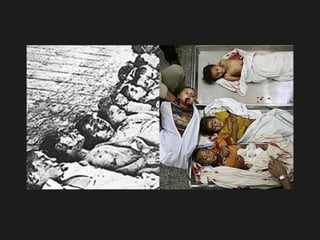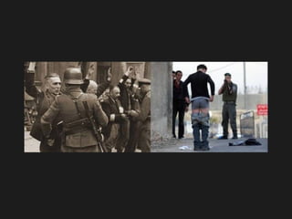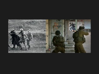 El documento compara las acciones de Israel contra los palestinos con las acciones de la Alemania nazi contra los judíos durante el Holocausto, afirmando que los nietos de los sobrevivientes del Holocausto están haciendo lo mismo a los palestinos mediante la construcción de muros, puestos de control, arrestos y la destrucción de hogares para mantener a la gente en prisión y privarles de la libertad de movimiento, así como expulsarlos de sus hogares, al igual que hicieron los nazis. Insta a los lectores a detener el genocidio
