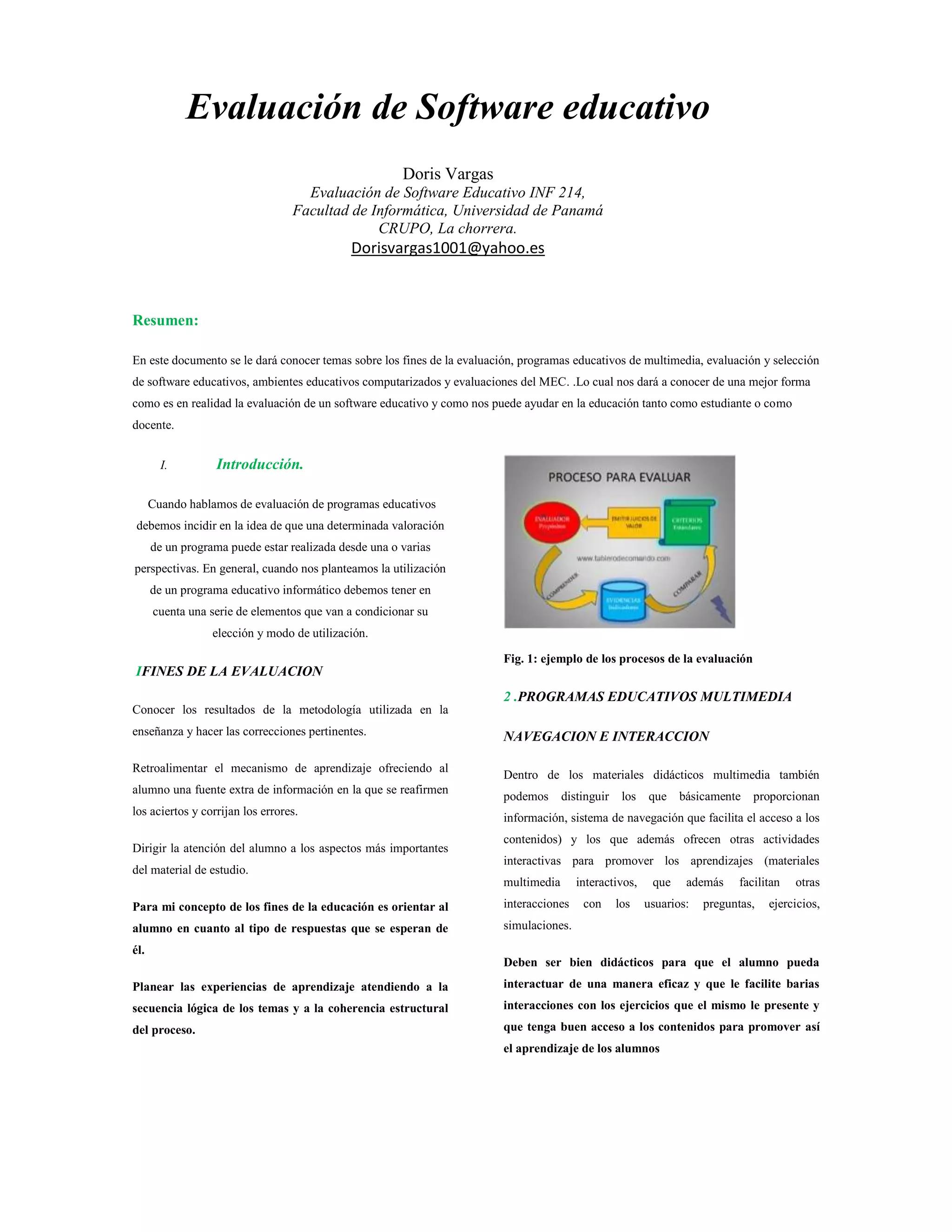Este documento habla sobre la evaluación de software educativo, incluyendo los fines de la evaluación, programas educativos multimedia, la evaluación y selección de software educativo, ambientes educativos computarizados y la evaluación del Ministerio de Educación. Explica que la evaluación de software educativo debe considerar las propiedades intrínsecas del programa y su posible implementación en el aula para analizar su potencial educativo y permitir la interacción del estudiante con el computador para evaluar y elevar su aprendizaje.