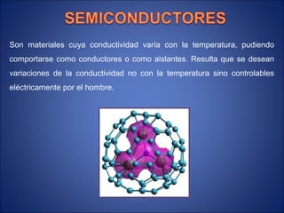 El documento describe los semiconductores intrínsecos y el proceso de dopaje para crear semiconductores tipo P y tipo N. Un semiconductor intrínseco es puro y no contiene impurezas. Mediante el dopaje con átomos de valencia 3 o 5 se introducen huecos o electrones libres respectivamente, creando semiconductores tipo P rico en huecos o tipo N rico en electrones.