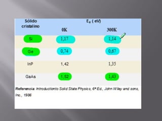 Los semiconductores son elementos que pueden comportarse como conductores o aislantes dependiendo de factores como el campo eléctrico, la temperatura o la presión. Los semiconductores más comunes son el silicio y el germanio. Un semiconductor intrínseco tiene una estructura cristalina pura sin impurezas, mientras que un semiconductor dopado contiene pequeñas cantidades de otros átomos que afectan su conductividad.