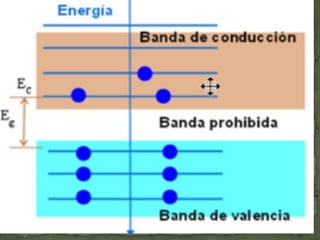 Este documento proporciona información sobre semiconductores intrínsecos y dopados. Explica que los semiconductores intrínsecos son aquellos que no contienen impurezas, mientras que los semiconductores dopados contienen pequeñas cantidades de impurezas que donan u aceptan electrones. Describe los tipos de dopaje N y P, señalando que el dopaje N produce un exceso de electrones y el dopaje P produce un exceso de huecos. También incluye ejemplos de dopantes comunes como el fosforo y el boro