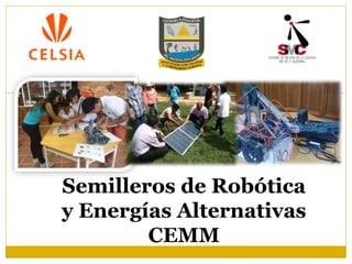 El documento describe un semillero de robótica en Ciudadela Educativa del Magdalena Medio. El semillero tiene como misión formar estudiantes interesados en la tecnología robótica aplicada a la agricultura. Su visión es ser reconocido en 2016 por su espíritu de investigación. El objetivo general es acercar a los estudiantes al mundo de la robótica a través de proyectos que apliquen a la agricultura.