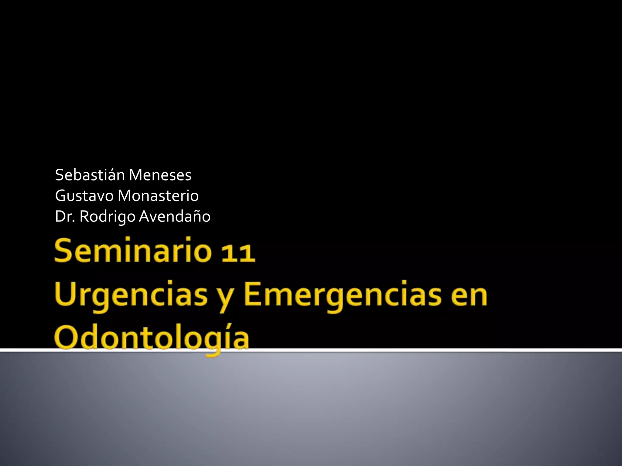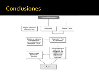 Este documento trata sobre las urgencias odontológicas ambulatorias en Chile. Explica que las urgencias odontológicas representan el 20,4% de las urgencias en Chile y que deben ser atendidas como una Garantía Explícita en Salud (GES). También describe que la Ley de Urgencias y el Artículo 12 establecen que los pacientes deben recibir atención de urgencia sin costo y ser derivados a centros de mayor complejidad cuando sea necesario.