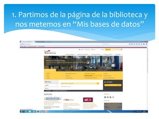 El documento proporciona instrucciones en 11 pasos para realizar una búsqueda en la base de datos PubMed utilizando términos de búsqueda, límites y DeCS para encontrar artículos relevantes y guardar las citaciones y PDF completos en Mendeley.