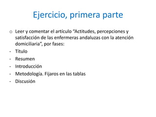 Este artículo examina las actitudes y niveles de satisfacción de las enfermeras andaluzas con la atención domiciliaria. El estudio encontró que existe un nivel más alto de satisfacción que en estudios anteriores con respecto al trabajo en el domicilio y la atención primaria. La discusión compara los resultados con estudios similares y resalta la importancia de los datos para orientar estrategias de mejora en la atención domiciliaria.