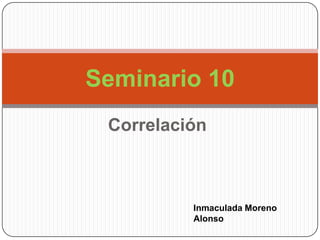El documento presenta los resultados de varios análisis de correlación entre diferentes variables usando datos reales. Encuentra una correlación moderada y positiva entre peso y horas de deporte, una muy buena y negativa entre cigarrillos fumados y nota de acceso, y una buena y positiva entre peso y altura. También determina que existe una muy alta correlación positiva entre edad y peso de unos niños. Sin embargo, no encuentra correlación entre las notas de matemáticas y lengua de unos alumnos.