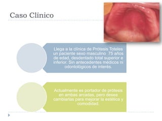 Este documento describe un seminario sobre estrategias de búsqueda y recopilación de información biomédica. Presenta el caso de un paciente desdentado total que desea reemplazar sus prótesis dentales existentes. El tratante tiene dudas sobre las consideraciones anatómicas para la rehabilitación de pacientes desdentados totales y realiza búsquedas en Google y PubMed para encontrar información sobre este tema.