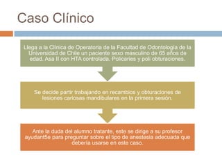 El documento compara el uso de Google y PubMed para buscar información sobre la anestesia en pacientes con hipertensión. PubMed proporciona resultados con un nivel de evidencia más alto como estudios de cohortes y revisiones sistemáticas, mientras que Google ofrece comentarios de expertos con menor respaldo científico. Aunque Google es más fácil de usar, PubMed es más recomendable para tomar decisiones clínicas debido a su mayor calidad de evidencia.