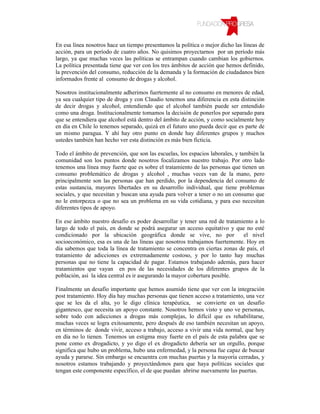 3. Florenzano argumentó que el consumo problemático de drogas y alcohol es tanto