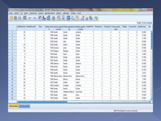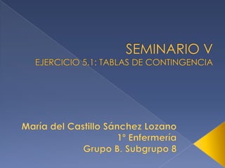 El documento propone realizar tablas de contingencia para analizar las posibles relaciones entre: 1) el tipo de centro educativo del que proviene el alumnado y su elección de enfermería como primera opción, 2) el sexo del alumnado y su elección de enfermería como primera opción, y 3) el gasto mensual en móvil y el sexo. Se concluye que existe una relación entre el centro educativo y la elección de carrera, y entre el gasto en móvil y el sexo.