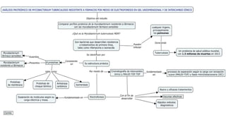 Este documento describe el estudio de Mycobacterium tuberculosis y la resistencia a medicamentos. Se compararon las proteínas de cepas resistentes a múltiples medicamentos (MDR) con cepas sensibles para identificar proteínas que podrían usarse como objetivos de medicamentos o marcadores de diagnóstico. Se aislaron cepas MDR y sensibles y se analizaron sus proteínas mediante cromatografía de intercambio iónico, electroforesis SDS-PAGE y espectrometría de masas MALDI-TOF para identificar proteínas asoci