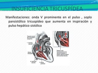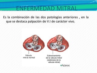 Este documento proporciona una guía detallada sobre la semiología del examen físico del aparato cardiovascular, incluyendo la inspección, palpación, percusión y auscultación del corazón, así como la descripción de los principales ruidos y soplos cardiacos. Explica la ubicación correcta para auscultar cada foco cardiaco y las características de los soplos fisiológicos, patológicos y aquellos asociados a diferentes enfermedades cardiovasculares.