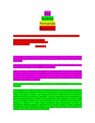 Este documento trata sobre la semiología y diferentes recursos para transmitir significados de manera no literal como el símil, la metáfora, la ironía y la mentira. Explica que la semiología estudia los signos y su uso en la comunicación, y describe brevemente algunas ramas como la semiología clínica.