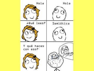 La semiótica es la disciplina que estudia cómo se construye el sentido a través de la producción y aprehensión de signos. La publicidad busca comunicar, impactar y captar la atención del público objetivo para influir en su comportamiento y motivar el consumo mediante la representación de símbolos, valores e identidades que generan adhesión a la marca. La semiótica permite a los publicistas descifrar el significado que los consumidores asignan a los objetos para aplicarlo en mensajes publicitarios efectivos que establezcan una relación con sus inter