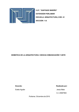La semiótica de la arquitectura estudia los símbolos y lenguajes arquitectónicos que transmiten los edificios. La arquitectura no solo es una construcción sino también arte, sentimiento y sensación. El significado de los elementos arquitectónicos depende del contexto cultural y puede comunicarse a través de luz, sombras e iluminación. La arquitectura ha evolucionado a lo largo de la historia y ahora es importante considerar el lenguaje utilizado y que transmita un conjunto coherente con estética, confort y funcionalidad.