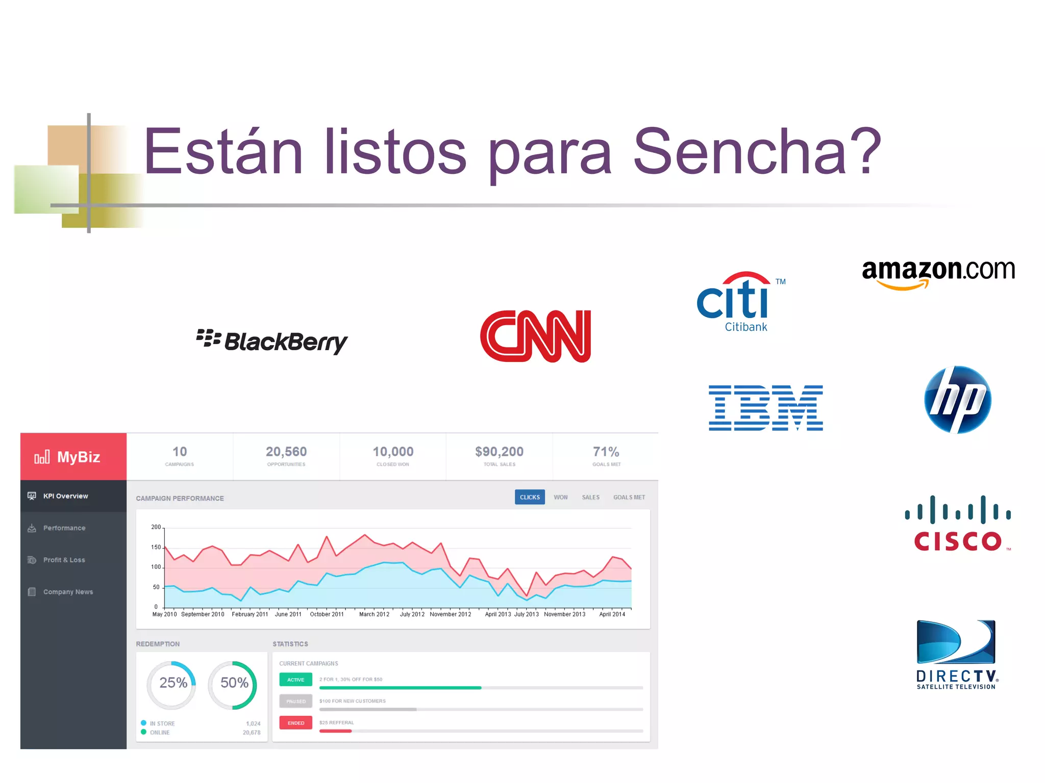 Sencha ExtJS es la plataforma más poderosa para desarrollar interfaces de escritorio en la web con compatibilidad en todos los navegadores principales. Ofrece una arquitectura MVC, componentes de interfaz modernos y capacidad para gráficos. Marketo usa Sencha ExtJS porque les permite agregar nuevas funciones en semanas en lugar de meses. Sencha ExtJS usa un modelo de desarrollo MVC con stores, models, grids y otros componentes de interfaz como vistas y listeners como controladores.