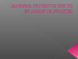 El documento discute el vínculo entre la creatividad de los maestros y el desarrollo de experiencias con TIC en la educación infantil. La ausencia de prescripciones curriculares y la particularidad de cada contexto requieren soluciones creativas para el uso educativo de las TIC. Los maestros creativos pueden imaginar proyectos TIC significativos que ofrezcan un punto de partida apropiado para la formación de los niños.