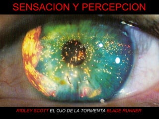 El documento describe los diferentes sentidos y órganos sensoriales humanos, incluyendo la vista, audición, olfato, gusto y tacto. Explica que la sensación es la detección de estímulos a través de los sentidos, mientras que la percepción es el procesamiento cerebral de las sensaciones que les da significado. También cubre conceptos como umbrales sensoriales y las cuatro fases del proceso perceptivo: detección, transducción, transmisión y procesamiento de información.