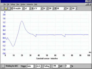 Este documento describe varios sensores automotrices, incluyendo su función, ubicación, síntomas de falla y pruebas. Se explican sensores como el MAP, MAF, CKP, ECT, VSS, CMP, knock, IAT, TPS y O2.