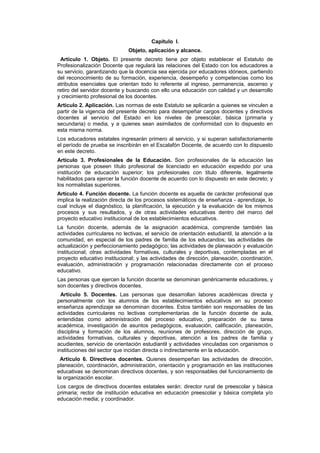 Este documento presenta un resumen de la Sentencia C-007 de 2003 de la Corte Constitucional de Colombia. La sentencia se refiere a una demanda de inconstitucionalidad contra el Decreto 1278 de 2002, que establece el Estatuto de Profesionalización Docente. La Corte Constitucional analiza los requisitos para el ingreso, nombramiento y clasificación de docentes en el servicio educativo estatal según el decreto demandado.