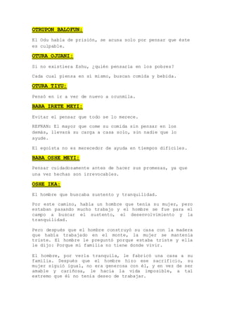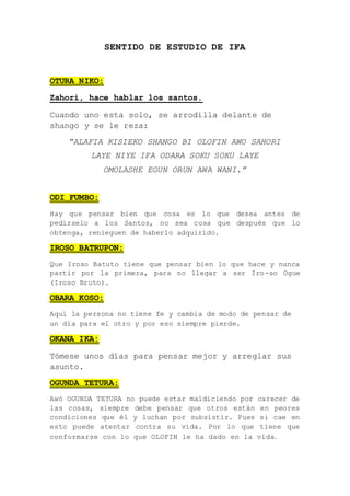 Este documento contiene varias secciones que describen la importancia de pensar cuidadosamente antes de actuar. Algunas secciones enfatizan pensar en los demás y no ser egoísta, mientras que otras secciones describen historias de personas que se arrepintieron de no haber pensado antes de tomar decisiones apresuradas. El documento en general promueve la reflexión prudente sobre las consecuencias de las acciones antes de actuar.