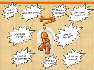 El documento explora las preguntas fundamentales sobre el sentido de la vida y las respuestas que han dado diferentes culturas y tradiciones a lo largo de la historia. Define el sentido de la vida como el significado y propósito de la existencia humana. Examina las perspectivas de los humanismos, las ciencias ocultas y las principales religiones del mundo sobre el tema.