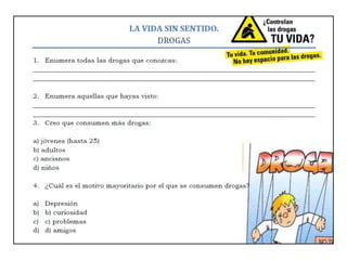 El documento trata sobre el sentido de la vida y dejar la cocaína. Contiene un enlace a un video sobre cómo dejar la cocaína y menciona diferencias en el cerebro y que no es lo que tenemos sino lo que somos.