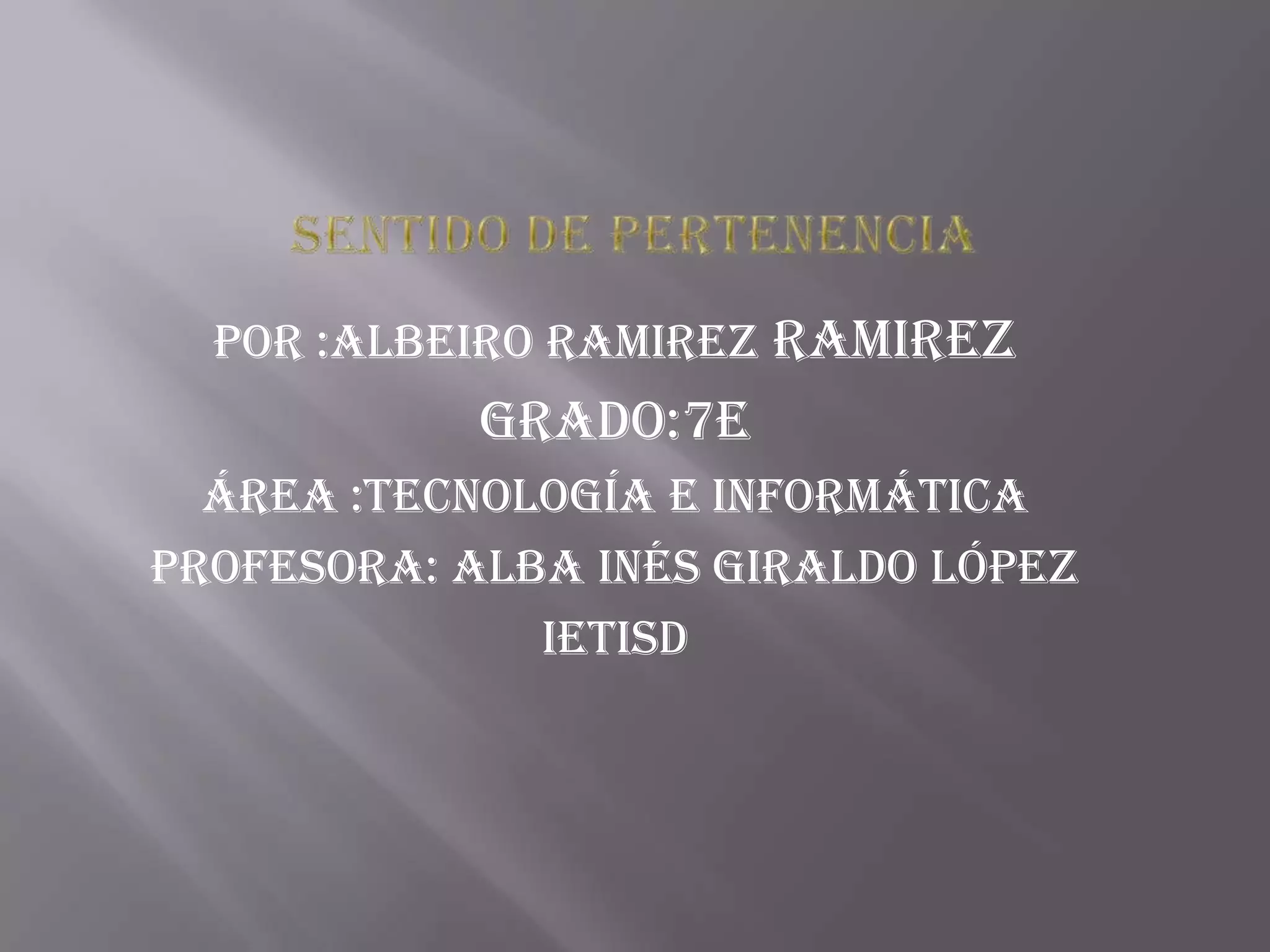 El documento habla sobre la importancia de tener sentido de pertenencia hacia la institución educativa. Sugiera que la escuela es el segundo hogar, por lo que los estudiantes deben cuidar todas sus pertenencias e inmuebles, como depositar la basura en los recipientes adecuados, cuidar las zonas verdes y mantener limpias las aulas.