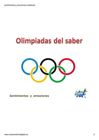 El documento es una presentación interactiva del proyecto 'Aula Creativa - Emociones y Sentimiento' enfocado en la educación infantil. Su objetivo es fortalecer la autoestima de los niños mediante el reconocimiento individual y grupal, utilizando imágenes reales en lugar de caricaturas. Además, se busca ayudar a los niños a identificar y expresar emociones como la alegría y la tristeza durante las actividades.