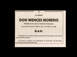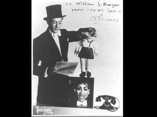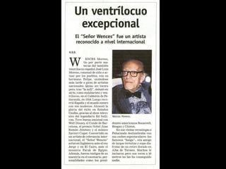 El Señor Wences fue un famoso ventrílocuo español que alcanzó gran éxito en Estados Unidos en las décadas de 1940 y 1950 usando muñecos como Pedro y Johnny. Nació en Salamanca en 1896 y llegó a ser uno de los showman más populares de Broadway, conocido por su peculiar pronunciación del inglés. Murió en 1999 a los 103 años habiendo recibido varios homenajes.