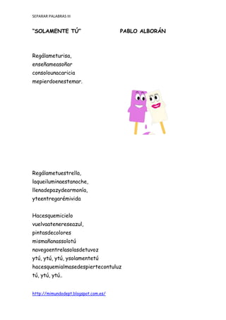 Este documento contiene las letras de varias canciones infantiles y populares en español, incluyendo "Mambrú", "Debajo de un botón", "Los cochinitos", "24 horas" de David Bisbal, "A esto le llamas amor" de Malú, "Si es por amor" de Violetta, "Darte un beso" de Prince Royce y más.