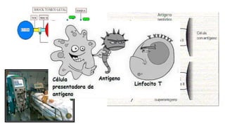 El documento presenta información sobre sepsis y shock séptico. Detalla que la incidencia de sepsis ha aumentado en los Estados Unidos desde 1979. Define el shock séptico como una condición en la que la presión arterial no puede proporcionar oxígeno a los órganos vitales. Luego describe los tipos de shock circulatorio, las causas más comunes de sepsis y algunos de los principales gérmenes que la pueden producir, como bacterias y hongos. Finalmente, menciona algunos signos y síntomas asociados al shock séptico.