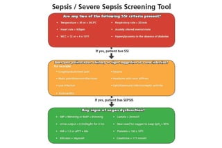 Este documento presenta información sobre sepsis, incluyendo su epidemiología, definiciones, fisiopatología, screening temprano, manejo inicial y evidencia disponible. Se describe el espectro continuo de SIRS a sepsis severa y shock séptico, así como las medidas iniciales del manejo de sepsis conocidas como "Sepsis Six". Finalmente, se discuten controversias en torno a la terapia de reemplazo de corticoides y fluidoterapia en el manejo de sepsis.