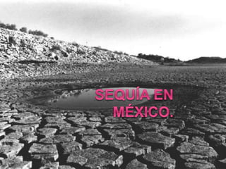 La sequía se define como un período prolongado de falta de lluvias y puede ser meteorológica o hidrológica. Sus causas incluyen la falta de lluvia, la sobreexplotación de recursos hídricos y del suelo, y el cambio climático. Sus consecuencias son la desertificación, erosión y pérdida de la capacidad de retención de agua. Cada vez más estados de México se ven afectados por la sequía.