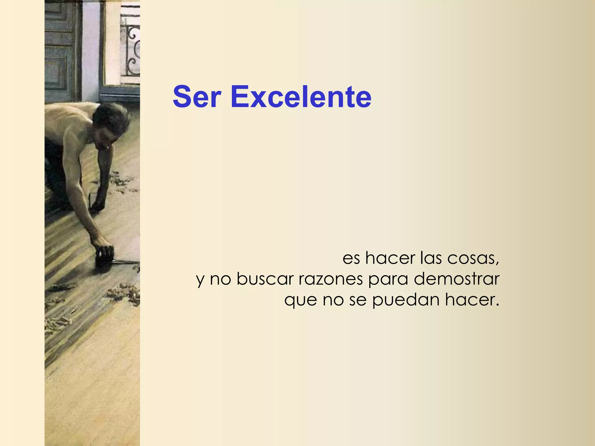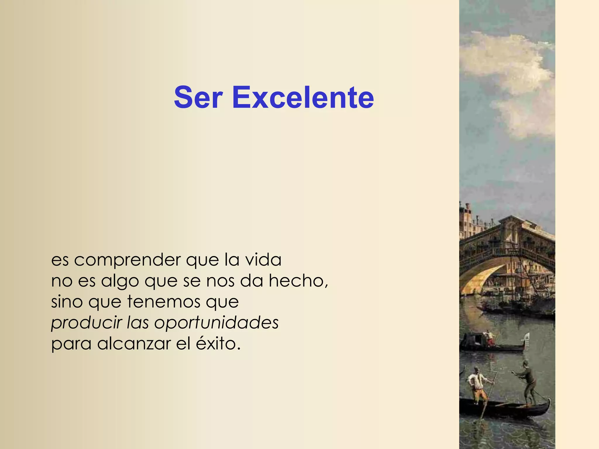 El documento describe las características de ser excelente, incluyendo hacer las cosas en lugar de buscar excusas, producir oportunidades para lograr el éxito, alcanzar objetivos a pesar de circunstancias, aprender de los errores, y esforzarse para desarrollar todo el potencial humano. Ser excelente significa crear valor para otros y legar un mundo mejor a las generaciones futuras.