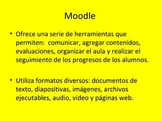 Este documento compara las plataformas Moodle y E-ducativa para cursos en línea. Moodle ofrece herramientas como contenido, evaluaciones y seguimiento del progreso de los estudiantes. E-ducativa fue diseñada para capacitación en línea en instituciones educativas. Aunque ambas permiten comunicación, E-ducativa incluye más herramientas como videoconferencia y correo electrónico. El documento concluye que E-ducativa es la mejor opción para un curso de enfermería debido a su facilidad de uso y