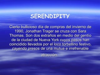 Jonathan y Sara se conocen por casualidad en una tienda en Nueva York y sienten una conexión, pero deciden dejar el destino de su relación en manos del destino. Años después, cuando ambos están a punto de casarse con otras personas, emprenden una búsqueda mutua para reencontrarse y ver si su amor puede superar al destino.