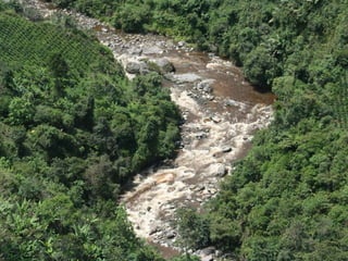 El documento presenta información sobre el departamento de Huila en Colombia. Se encuentra ubicado entre los 3°47'32"N y 74°28"33"W, con una población de aproximadamente 850,000 habitantes distribuidos en 37 municipios. La economía se basa principalmente en la agricultura, con el café, el plátano y el arroz como los principales cultivos. El departamento posee diversos recursos hídricos, biológicos y culturales, incluyendo parques naturales, fuentes termales y los sitios arqueológicos de