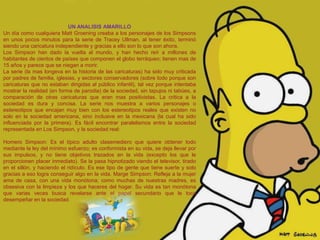 Los Simpson reflejan estereotipos y críticas de la sociedad estadounidense y mexicana a través de personajes como Homero, un adulto conformista; Marge, una ama de casa insatisfecha; y Bart, un niño rebelde. Además, la serie critica instituciones como la policía y la televisión. A pesar de recibir críticas, Los Simpson invitan a la reflexión a través de la sátira social y siempre terminan los episodios con una moraleja sobre la familia.