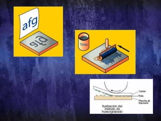 El documento describe la historia de la imprenta en China y su evolución. Los chinos desarrollaron la imprenta en el siglo II d.C. usando bloques de madera para imprimir textos e ilustraciones. El primer libro impreso fue el Sutra de Diamante en 868. Más tarde, se inventó la xilografía para imprimir imágenes en tablas de madera. En el siglo XV, Gutenberg inventó la imprenta de tipos móviles metálicos en Occidente.