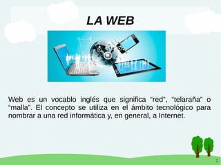 Este documento describe la evolución de la web desde la Web 1.0 hasta la Web 4.0. La Web 1.0 consistía principalmente en páginas web estáticas con contenido de texto. La Web 2.0 introdujo blogs, wikis, foros y redes sociales para permitir la colaboración y compartición de contenido. La Web 3.0 es la web semántica que se puede acceder desde múltiples dispositivos. La Web 4.0 se centrará en proporcionar un comportamiento más inteligente y predictivo a través de la interacción verbal.