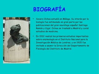 Severo Ochoa realizó investigaciones tempranas sobre la creatinina presente en la orina que le permitieron publicar su primer artículo científico. Esto llevó a que fuera invitado a unirse al prestigioso laboratorio de Otto Meyerhof en Berlín, donde pudo conocer importantes bioquímicos. Más tarde, Ochoa regresó a España para completar su tesis doctoral y luego viajó al Reino Unido, donde estudió vitaminas y enzimas como la glioxalasa, desarrollando un interés de por vida en el