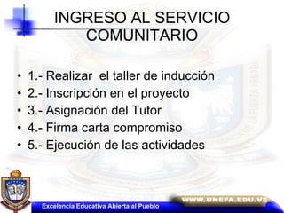 Este documento presenta una ley de servicio comunitario para estudiantes de educación superior en Venezuela. La ley establece que el servicio comunitario es un requisito para obtener un título, debe durar al menos 120 horas y aplicar los conocimientos académicos para beneficiar a la comunidad sin remuneración. Además, la ley define el objetivo del servicio comunitario como fomentar la solidaridad con la comunidad y hacer una contribución a la sociedad.