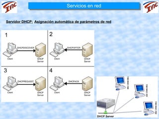 Este documento describe los diferentes servicios de red que se aprenderán, incluyendo servidores DHCP, DNS y FTP; acceso remoto; servidores web y de correo; interconexión de redes; redes inalámbricas; y servicios de voz sobre IP.