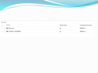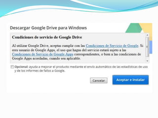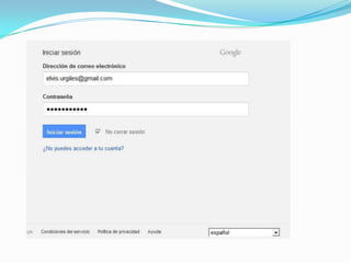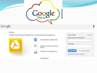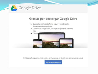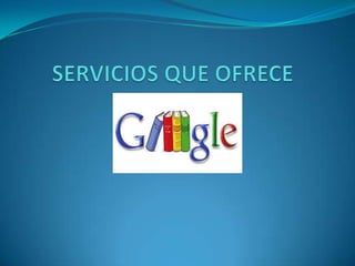 Este documento describe 27 servicios diferentes ofrecidos por Google, incluyendo el buscador principal de Google, Maps, Gmail, Traductor, Imágenes, Acortador de enlaces, Grupos, Picasa, Orkut, Drive, AdSense, Analytics, Desarrolladores, Planeta Marte, Tienda Android, YouTube, Calendario, Libros, Blogger, Reader, AdWords, Google+, Búsqueda de blogs, Alertas, Académico. Concluye que Google continúa mejorando y agregando nuevos servicios mientras otros son eliminados, y que ha aportado